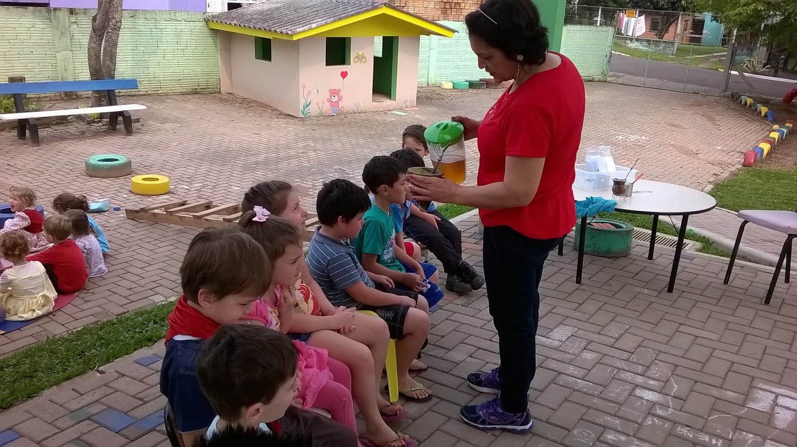 As turmas do Maternal 2 e Jardim A usufruindo do espaço criado pelas professoras Alvenir, Amanda e Thaís, em parceria com as famílias. O objetivo deste é explorar a musicalidade de materiais alternativos. O espaço ainda está em construção, mas já é um sucesso entre todos que o conheceram, principalmente os alunos que já criaram diferentes sons...